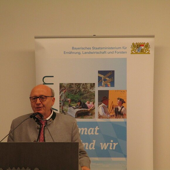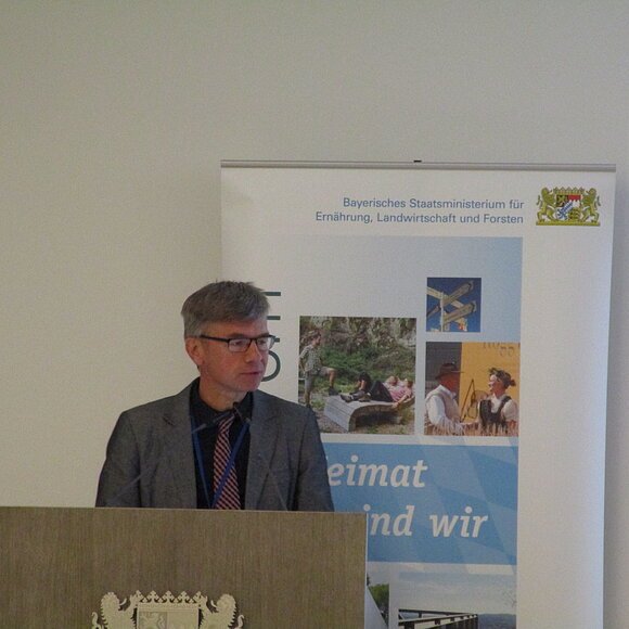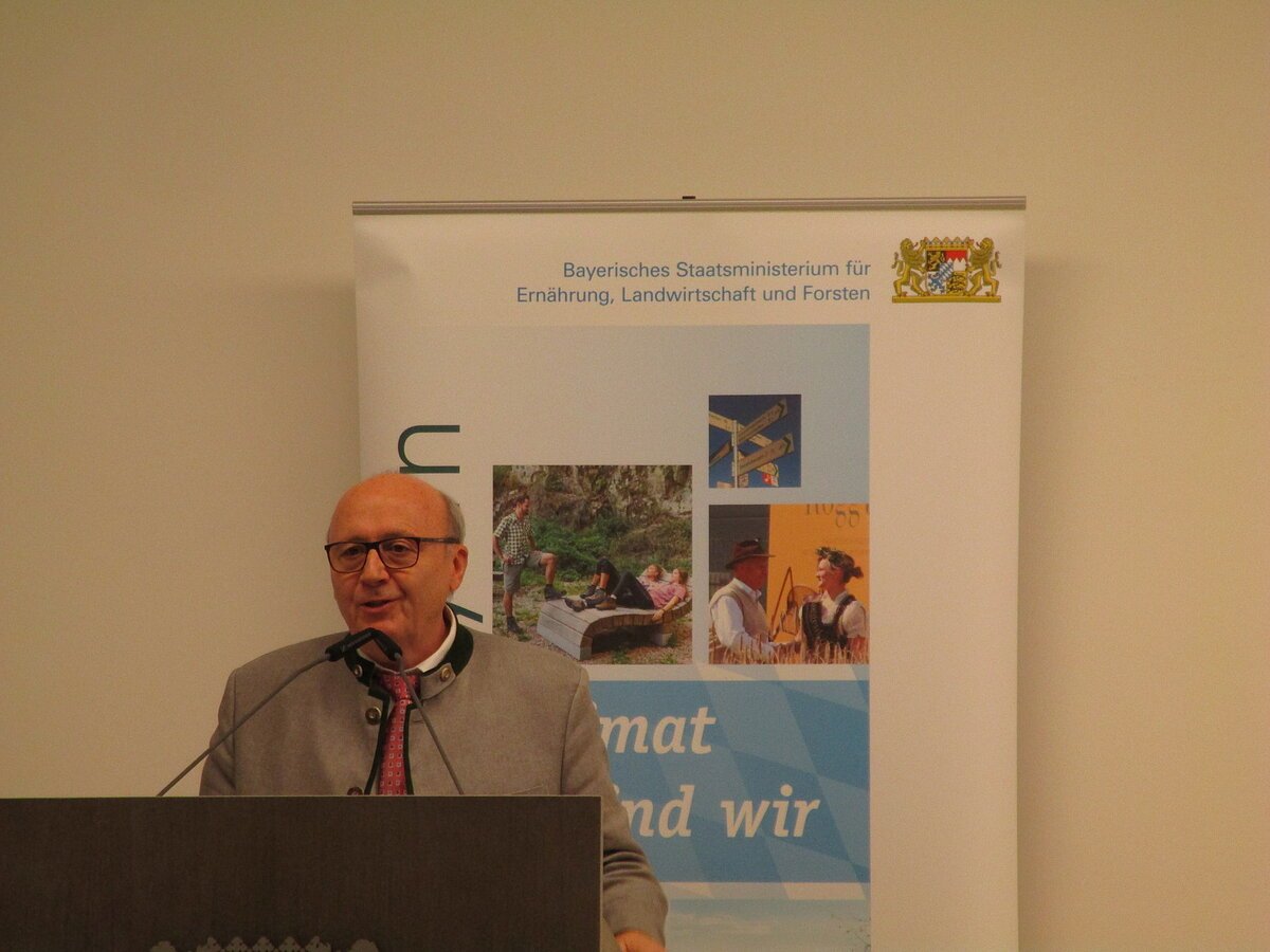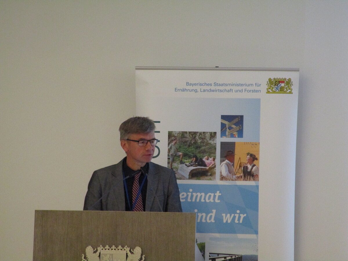 Das Förderprogramm LEADER wurde aus verschiedenen Blickwinkeln beleuchtet, u. a. durch den Kelheimer Landrat Martin Neumeyer (politische Sicht) und den Allgäuer LEADER-Koordinator Ethelbert Babl (Beratersicht). Seitens des StMELF wurde zum aktuellen Umsetzungsstand von LEADER in den einzelnen Regierungsbezirken informiert.