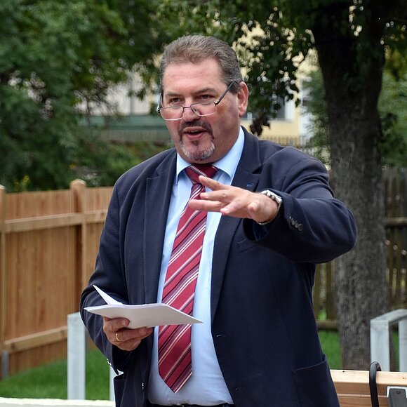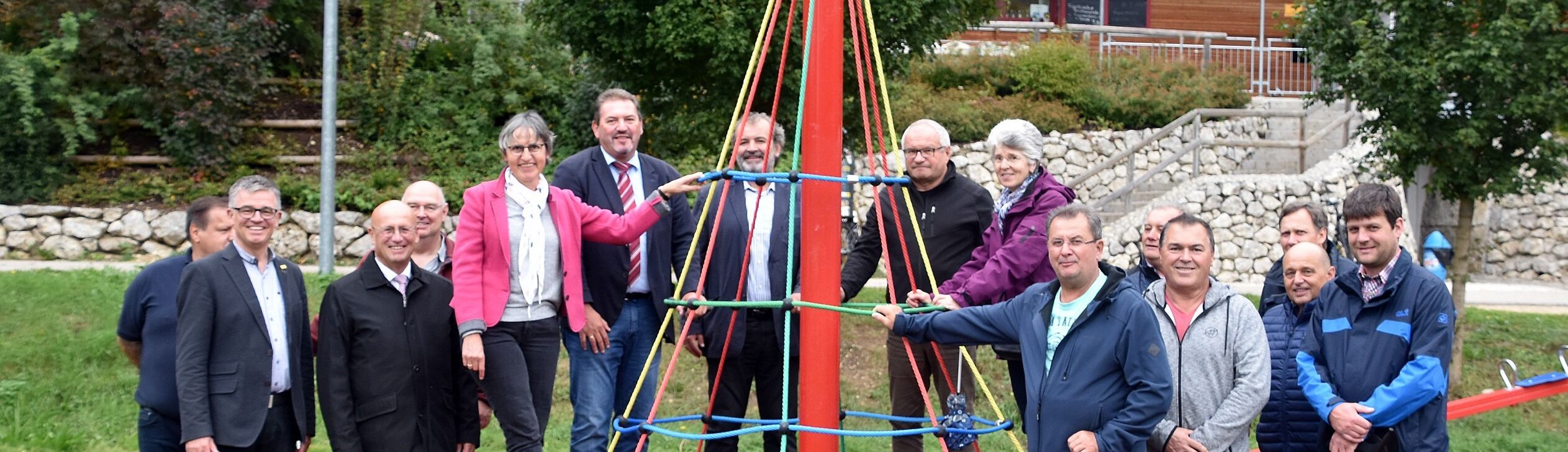 Mörnsheims Bürgermeister Richard Mittl, Landrat Anton Knapp, Christoph Würflein, Geschäftsführer des Naturpark Altmühltal, LEADER-Koordinatorin Agnes Stiglmaier, LAG-Vorsitzender Andreas Birzer sowie die Planer der Projekte, Gemeinderäte und Lenkungsausschuss-Mitglieder kamen in Mörnsheim zusammen, um die Einweihung der LEADER-Projekte "Innerörtlicher Wohlfühlplatz Mörnsheim" und "Aufwertung der touristischen Infrastruktur in Mörnsheim am Zeltplatz Hammermühle" zu feiern.