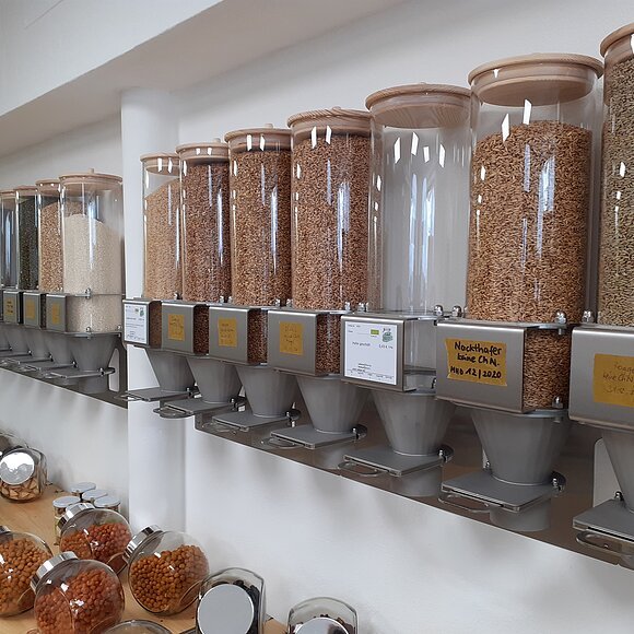 Mittlerweile ist das Einkaufen wie geplant möglich - unter Einhaltung der allgemein gültigen Hygienevorschriften (Maskenpflicht, Mindestabstand von 1,5 m). Der Unverpackt Laden bietet zudem einen Packservice an: Kunden können ihre Behälter vorab wiegen und beschriften und dann einen Korb mit Einkaufliste im Laden abgeben. Dieser wird wie gewünscht befüllt und kann zu einem vereinbarten Zeitpunkt wieder abgeholt werden.