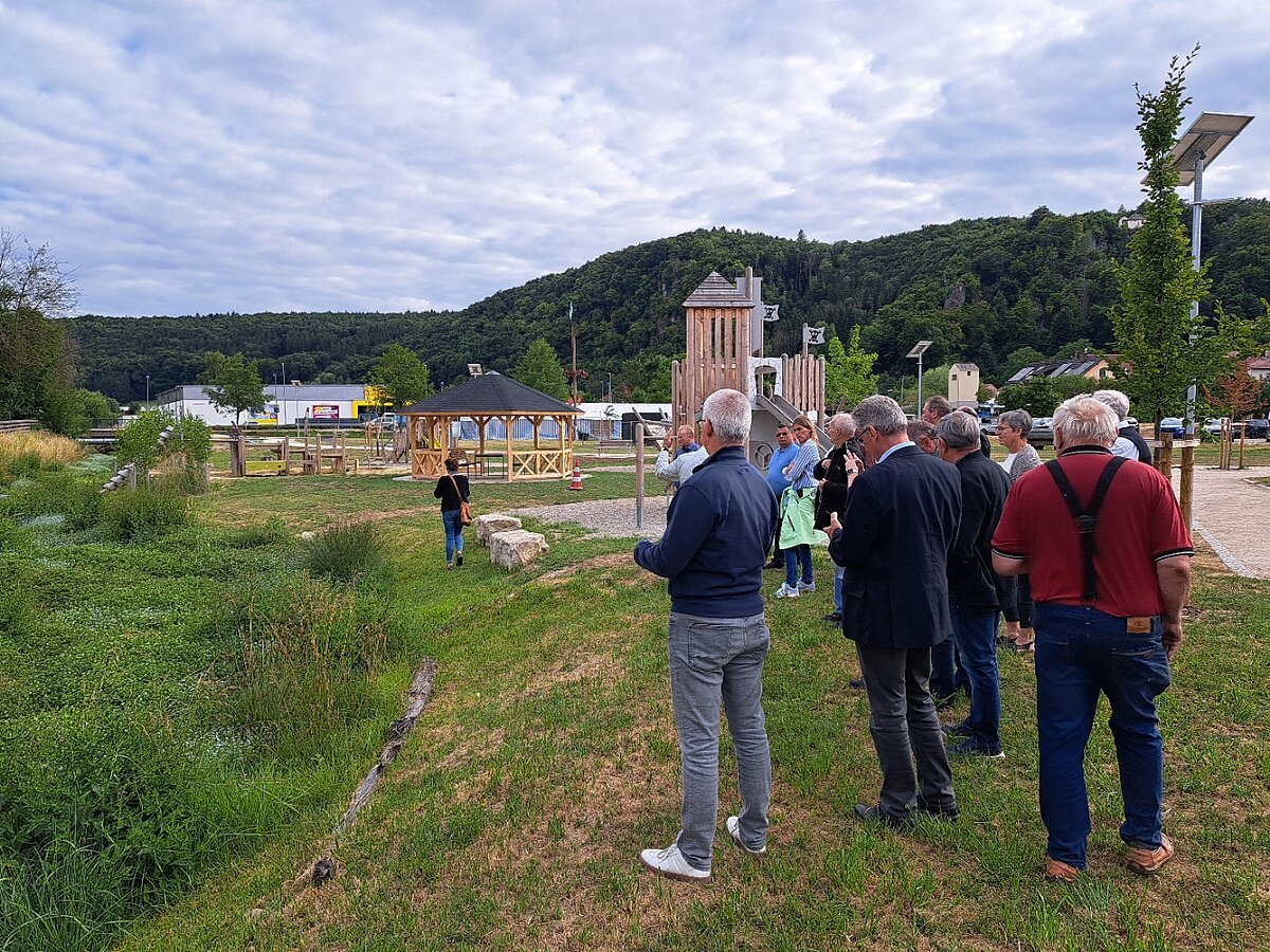 Zum Auftakt stellte Bürgermeister Robert Husterer das Projekt „Innerörtlicher Treffpunkt Schutterwiese Wellheim“ vor, das als Teilmaßnahme des Kooperationsprojekts „Wassererlebnis Altmühltal“ umgesetzt wurde. Bei der Besichtigung erhielten die Teilnehmenden einen anschaulichen Eindruck vom neu gestalteten Treffpunkt, der mit Unterstützung von LEADER-Mitteln realisiert wurde. Die Umgestaltung soll das Miteinander in der Gemeinde fördern und künftig als Ort der Begegnung für alle Generationen dienen – ein Ziel, das bei den Anwesenden auf breite Zustimmung stieß.