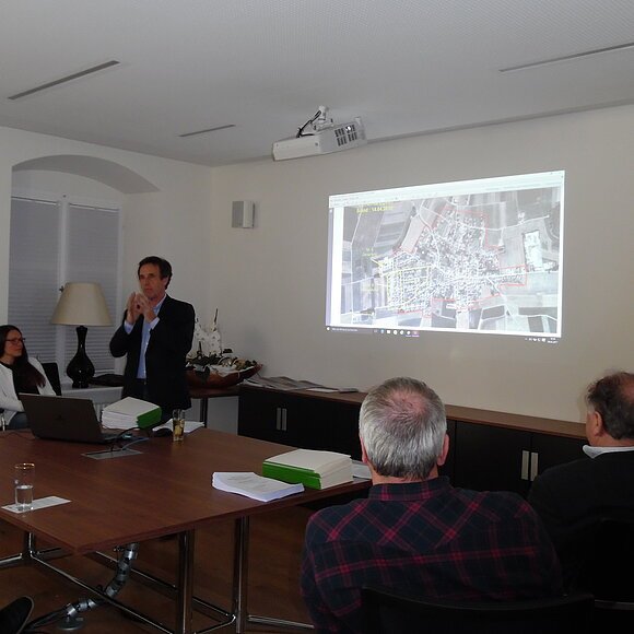 Stadtplaner Peter Markert gab einen Überblick über die Möglichkeiten und Grenzen der Innenentwicklung für Kommunen und legte allgemeine baurechtliche Grundlagen dar. Gerhard Schreiber, ehemaliger Leiter der Bauverwaltung beim Landratsamt Eichstätt, ergänzte den Beitrag und schilderte seine Erfahrungen in der Workshop-Arbeit mit Gemeindegremien.