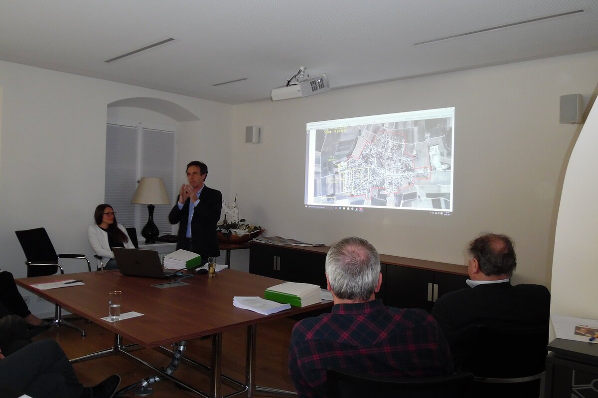 Franziska Rasch stellte Untersuchungen im Rahmen ihrer Masterarbeit zur Innenortsentwicklung von Eitensheim vor und präsentierte Entwürfe für zukünftige Nutzungen des Carlshofs. Außerdem zeigte sie Kooperationsmöglichkeiten zwischen Kommunen und Universitäten auf.