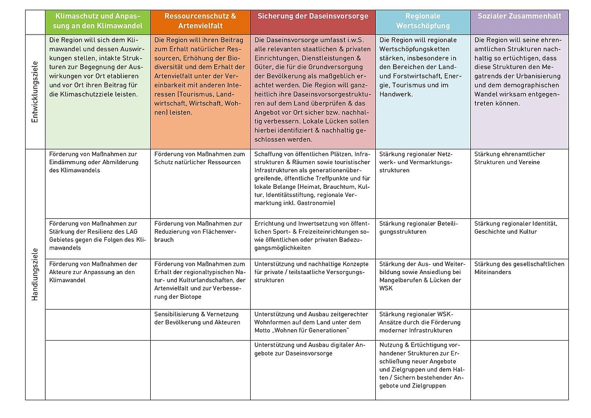 Gemeinsam mit unterschiedlichen Interessensgruppen und den Bürgerinnen und Bürgern des LAG-Gebiets erarbeitete die LAG mithilfe verschiedener Beteiligungsformate zukünftige Handlungsziele und Bedarfe für die kommende Förderperiode - getreu dem LEADER-Motto: „Bürger*innen gestalten ihre Heimat“. Ergebnis des Prozesses ist eine rund 60 Seiten umfassende neue Lokale Entwicklungsstrategie, mit neuen Entwicklungs- und Handlungszielen, auf die sich die Lokale Aktionsgruppe in den nächsten Jahren fokussieren möchte.