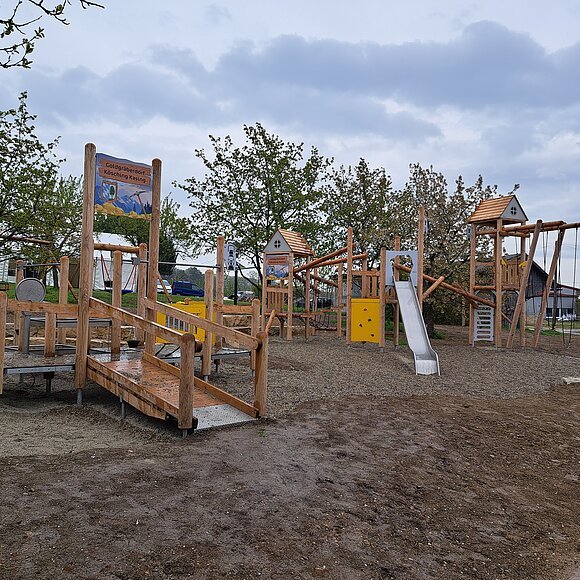 Installiert wurde eine Matschanlage zur Förderung des Entdeckersinns, ein spezieller, inklusiv gestalteter Kletterturm zur Anregung körperlicher Ertüchtigung und verschiedene Trainingsgeräte für Erwachsene als Möglichkeit zur Fitnessausübung. Der Ausbau des Freizeitangebots bietet zudem eine neue Rastmöglichkeit u.a. für Radfahrer*innen, aufgrund des direkt vorbeiführenden Schambachtalbahn-Radweges. Dadurch wurde ein inklusiver Ort der Bewegung und Begegnung für Jung und Alt, für Einzelne und Familien geschaffen, der zur Vernetzung der Bürgerschaft beiträgt und die Gemeinschaft stärkt.