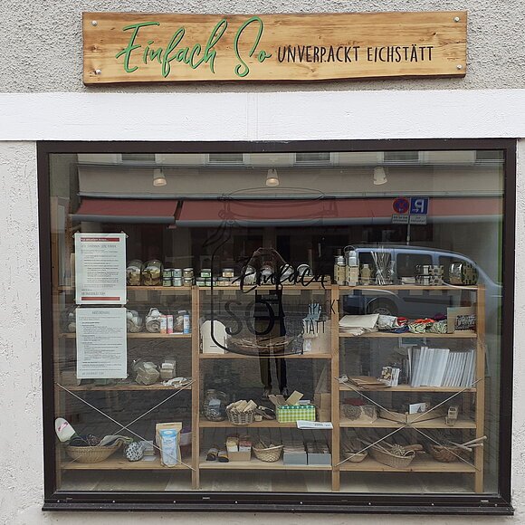 In der Eichstätter Innenstadt wurde ein Ladengeschäft eröffnet, in dem Lebensmittel, Haushalts- und Drogerieartikel ohne Verpackung angeboten werden. Betrieben wird der Unverpackt Laden von einer Genossenschaft (Gründung Oktober 2019 / Eintragung Anfang 2020), die sich die Förderung eines nachhaltigen Lebensstils zum Ziel gesetzt hat. Der Unverpackt Laden ist in einem kleinen Geschäft in der Nähe des Marktplatzes mit einer Verkaufsfläche von ca. 40 m² entstanden. Das Produktsortiment wird überwiegend von Betrieben aus den umliegenden Kommunen und der Region bezogen. Die Einrichtung und Ausstattung des Ladens sind Gegenstand der LEADER-Förderung.